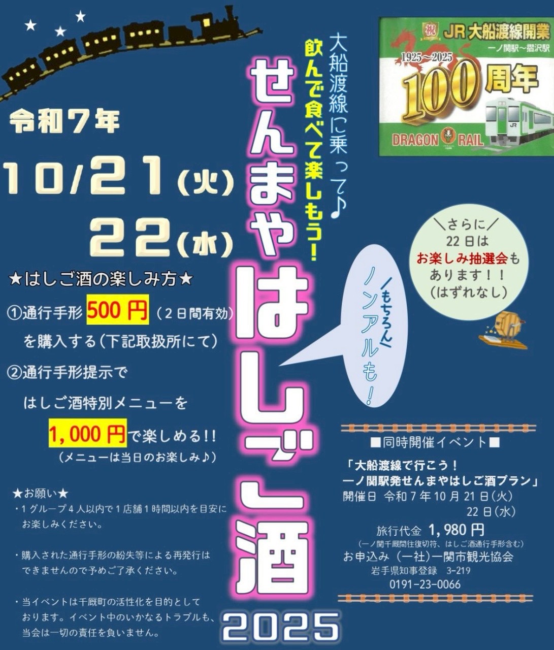 10月21日&22日 千厩町内で、 『せんまやはしご酒』が開催されます!