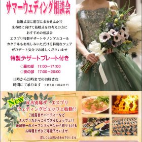 ♡wedding news♡ 7.8月のブライダルフェアは『サマーウェディング相談会』を毎日開催致します☘️ 特製デザートプレート付き🍰 NEW!!!…