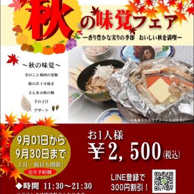 🍄OIZEN NEWS🍄 9月は『秋の味覚フェア』を開催致します! お一人様2500円(税込) LINE登録で300円引きとなります 🍁 ご予約制とな…