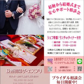 Wedding News 10月のブライダルフェアは 【安心サポート相談会】 お顔合わせ・結納・結婚式 具体的になにをすればいい? 準備はどうすればい…